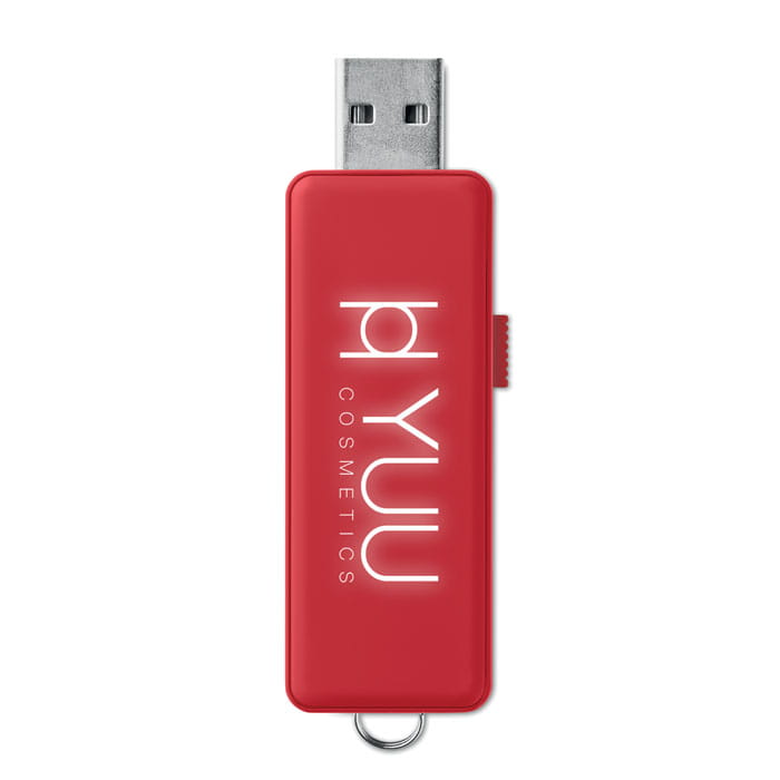 Podkreśl swoją markę dzięki temu wyjątkowemu podświetlanemu USB. Wybierz spośród 4 kolorów obudowy (czarny, niebieski, szary i czerwony) oraz 5 kolorów podświetlenia (czerwony, zielony, niebieski, biały i żółty). Czas dostawy: od 21 dni roboczych. Opcje nadruku: grawerowanie. Brak możliwości wyboru obudowy lub podświetlenia w indywidualnym kolorze PMS.