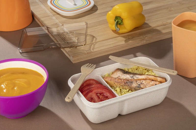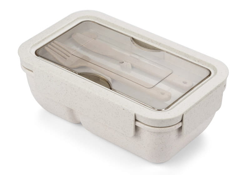 Pojemnik na żywność UPPI to świetna propozycja praktycznego upominku. Pojemnik wykonany jest z tworzywa z domieszką słomy pszennej, co redukuje ilość tworzywa sztucznego potrzebnego do produkcji. Składa się z dwóch komór – większej i mniejszej. Dodatkowo, wyposażony jest w nóż i widelec, dzięki czemu nie tylko oszczędza się miejsce, ale także zawsze ma się sztućce pod ręką. Pojemnik nadaje się do użycia w kuchenkach mikrofalowych oraz do mycia w zmywarce. Pojemność 720 ml.
