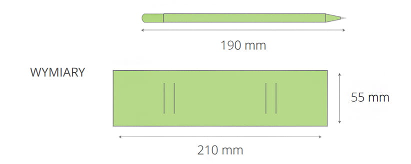 Wymiary: ołówek 190 mm, etui 210 x 55 mm