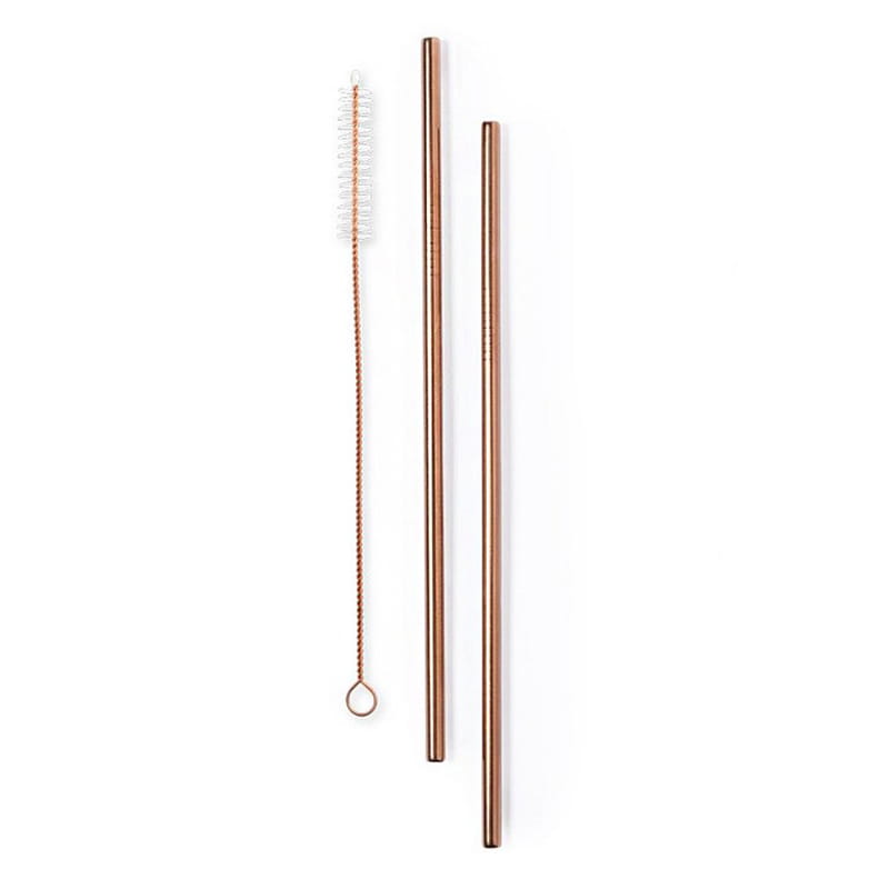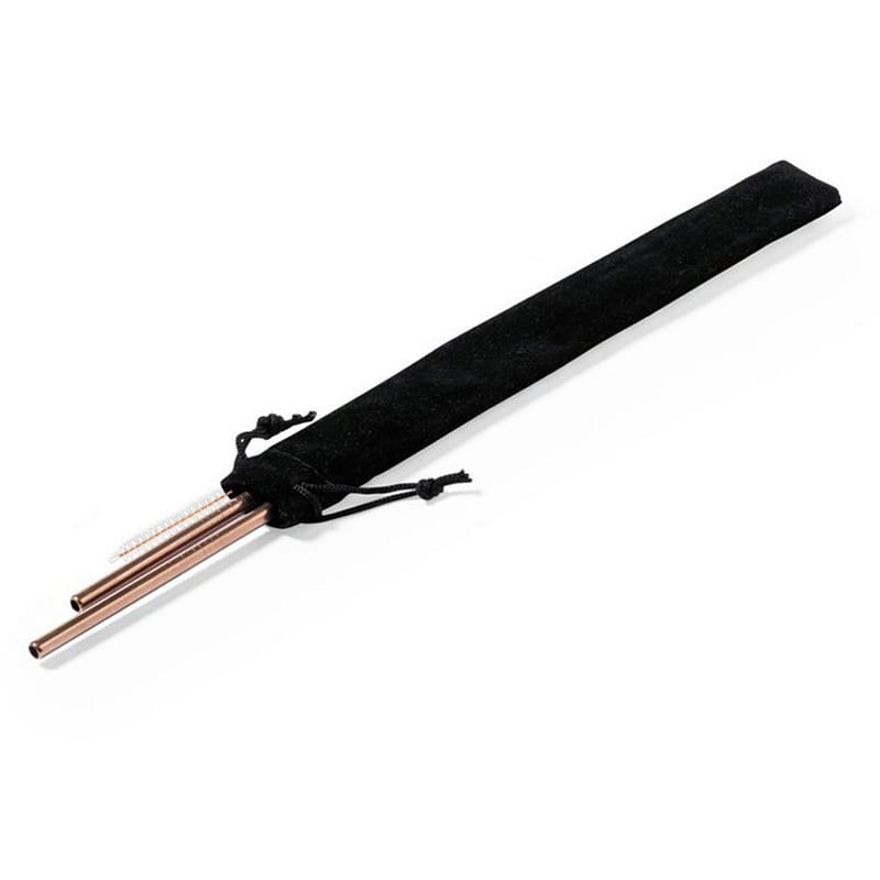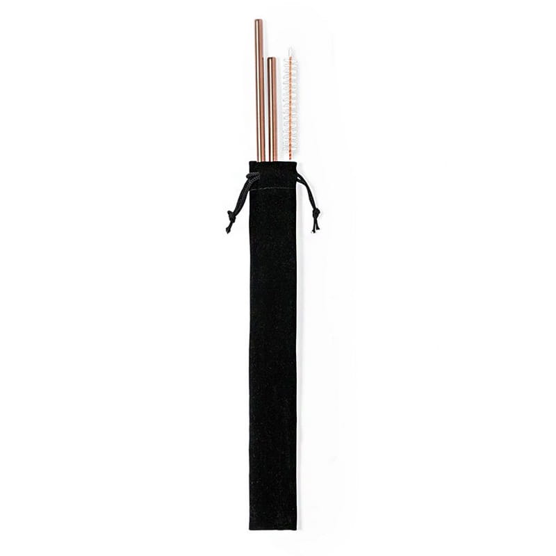 Zestaw 2 słomek wielokrotnego użytku ze stali nierdzewnej, miedziane wykończenie, czyścik i welurowy woreczek w komplecie