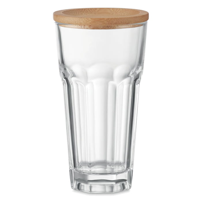 Szklanka wielokrotnego użytku z bambusową pokrywką, która może służyć również jako podstawka. Ładnie zaprojektowana szklanka do codziennego użytku z wielofunkcyjną pokrywką. Bambusowa pokrywka sprawia, że szklanka wyróżnia się spośród innych. Pojemność: 300 ml. Bambus jest produktem naturalnym, mogą występować niewielkie różnice w kolorze i rozmiarze poszczególnych elementów, co może mieć wpływ na końcowy efekt dekoracji.
