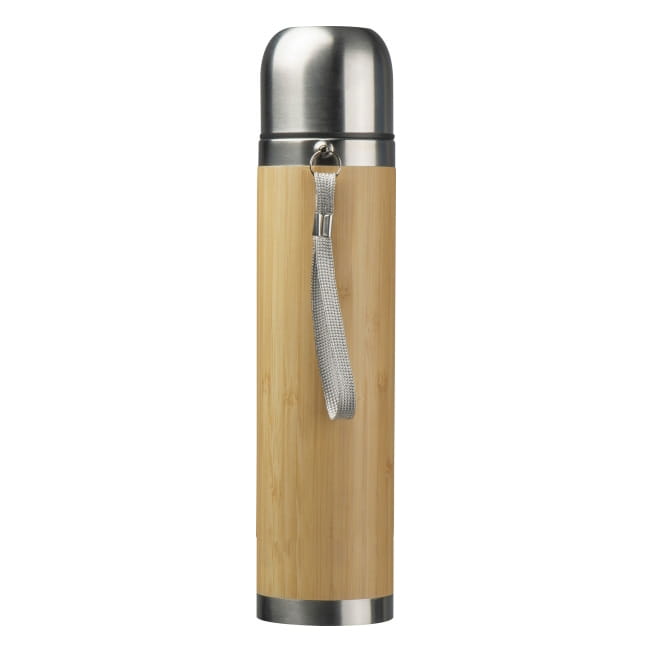 Termos próżniowy o pojemności 400 ml z podwójnymi ściankami, z kubkiem do picia i paskiem do przenoszenia. Wykonany jest ze stali nierdzewnej i posiada powłokę bambusową.