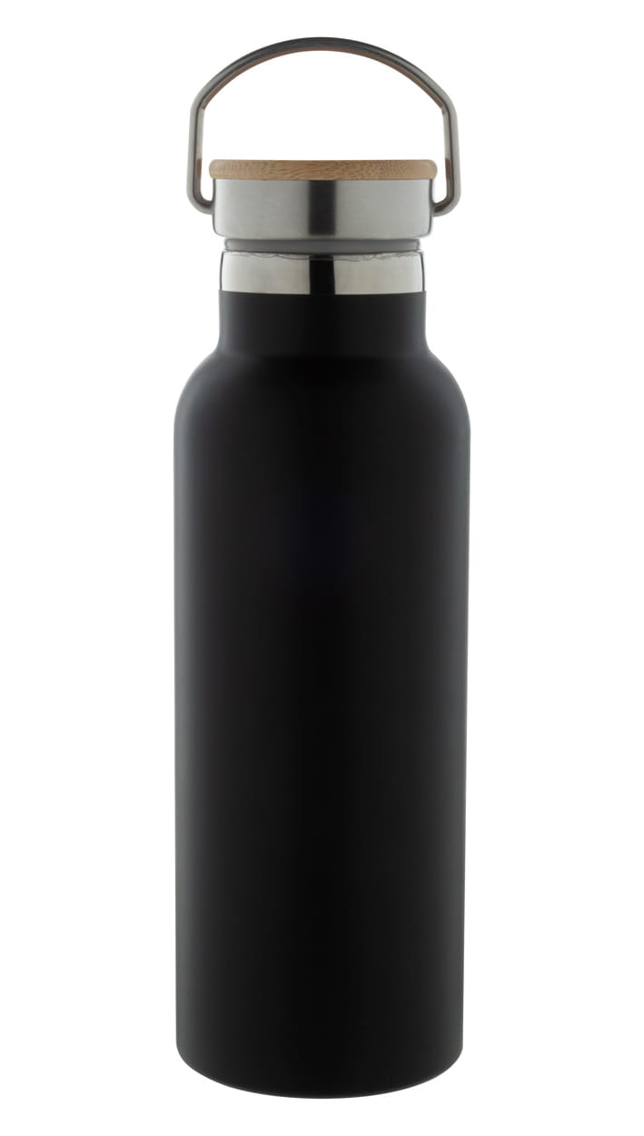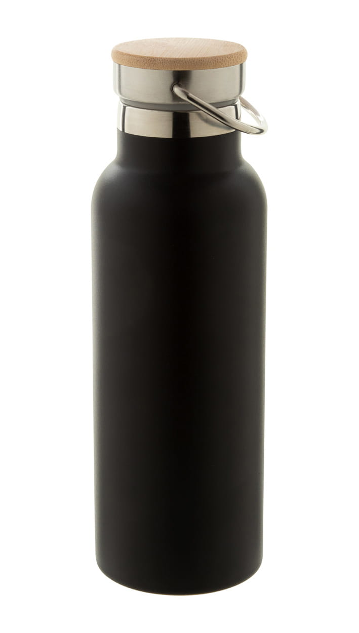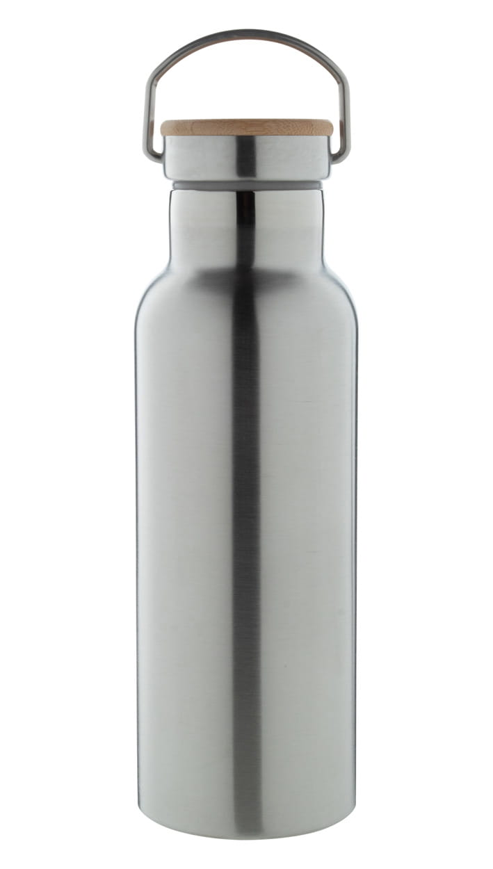 Termos ze stali nierdzewnej z izolującą podwójną ścianką i bambusową zakrywką. Pojemność: 500 ml.