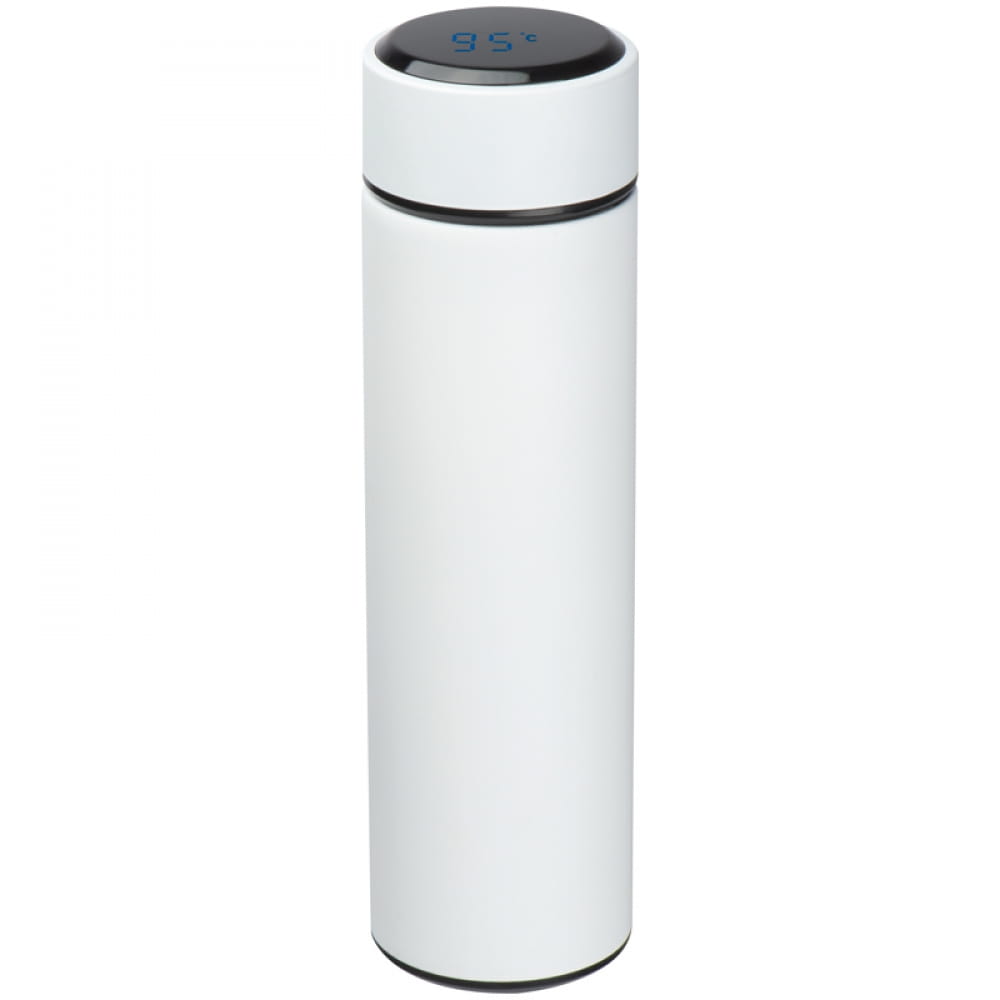 Termos ze stali nierdzewnej z elektronicznym termometrem w plastikowej pokrywce. Wystarczy go dotknąć, a temperatura napoju pokazuje się na wyświetlaczu. Termos utrzymuje ciepłą temperaturę napoju do 6 godzin, a zimną - do 9.