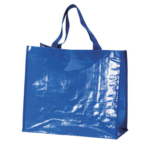 Laminowana duża torba na zakupy. Torba jest bardzo pakowna i wytrzymała, posiada rozszerzone dno. Gramatura: 120 g/m²