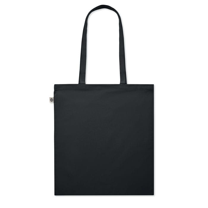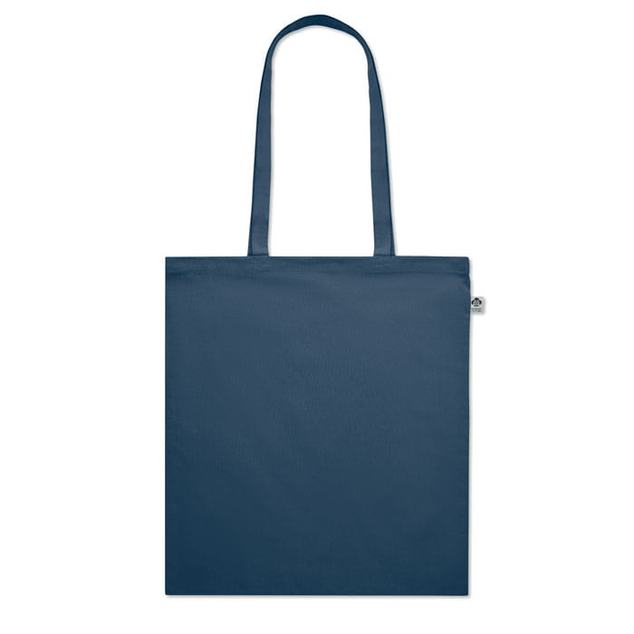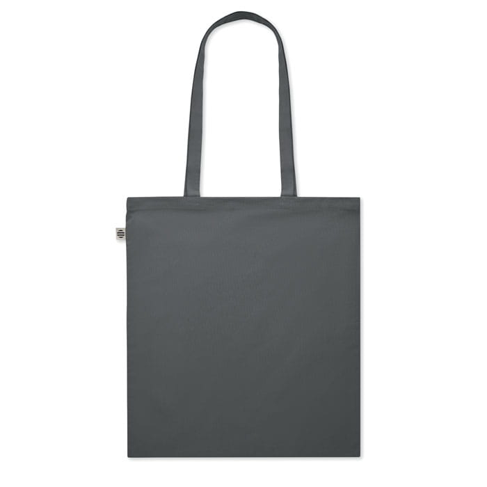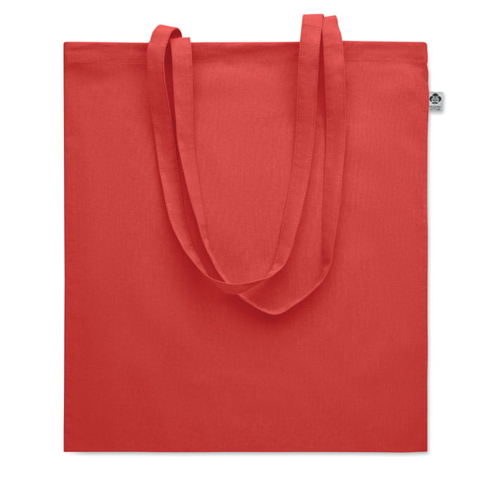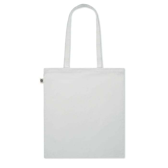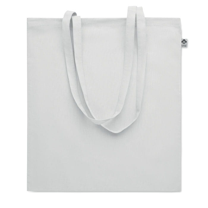 Torba na zakupy z bawełny organicznej z długimi uchwytami. 180 gr/m². Wyprodukowana zgodnie z certyfikowanym standardem dotyczącym stosowania szkodliwych substancji w tekstyliach.