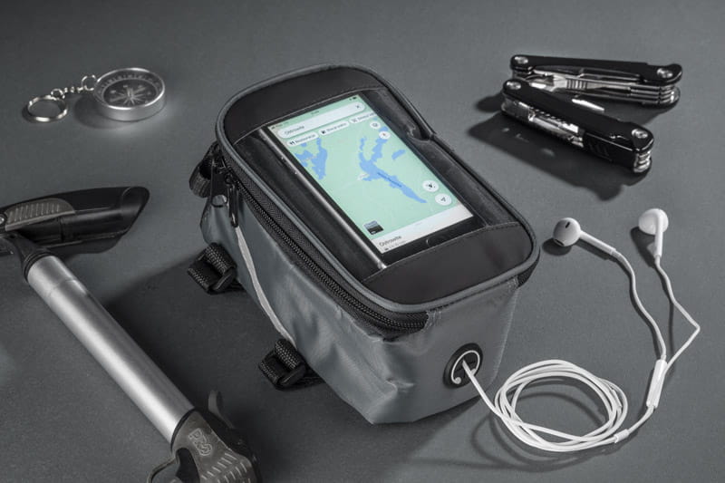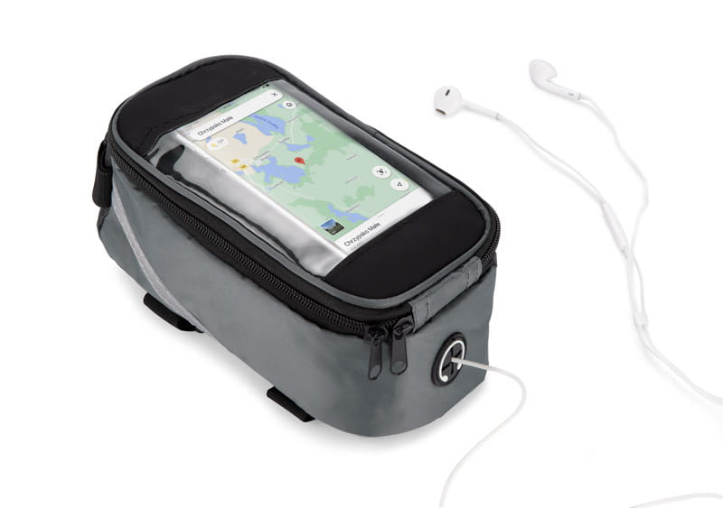 Solidnie mocowana do ramy torba rowerowa posiada pojemną, zapinaną na zamek komorę na drobne przedmioty. Dodatkowo w torbie VELO znajduje się wyjście na słuchawki oraz kieszonka z folią dotykową na smartfona, która umożliwia korzystanie z telefonu bez konieczności wyciągania go z torby. Spoglądanie na nawigację czy sterowanie odtwarzaczem muzyki nie stanowi żadnego problemu, nawet podczas jazdy na rowerze.