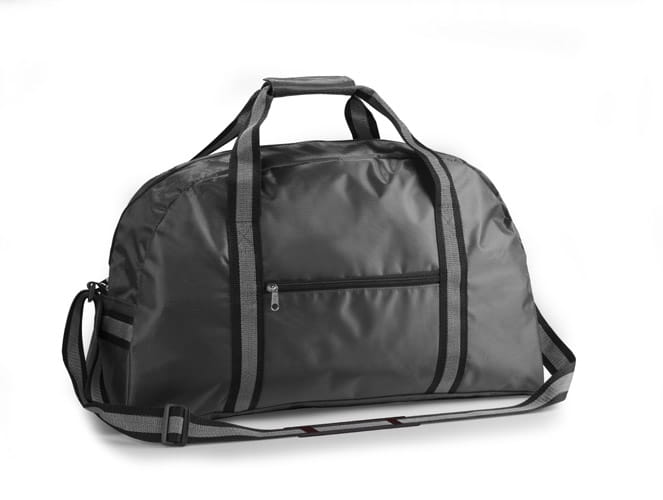 Pojemna torba sportowa wykonana z poliestru 420D. Można nosić ją w ręce, trzymając za 2 małe uchwyty, lub na ramieniu, na dłuższym regulowanym pasku. Torba posiada 3 zewnętrzne kieszenie - jedną zapinaną na zamek i dwie zapinane na rzepy.