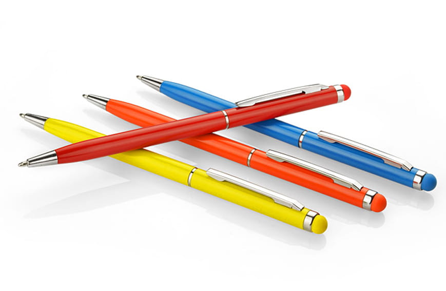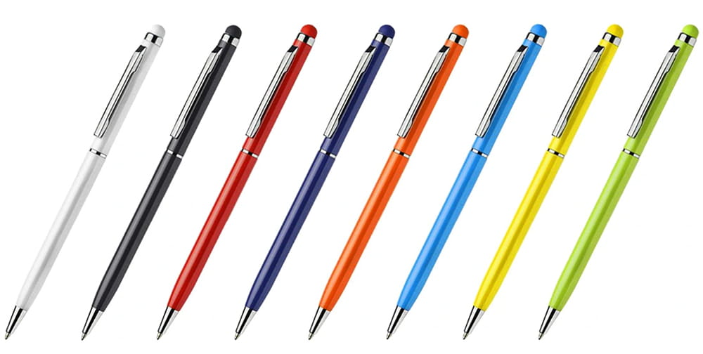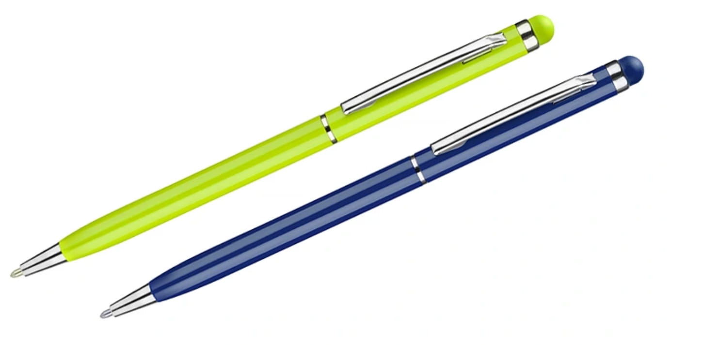 TIN 2 to cienki, metalowy długopis z kolorową końcówką do ekranów dotykowych (touch). Długopis posiada mechanizm typu ""twist"". Wkład w kolorze niebieskim.