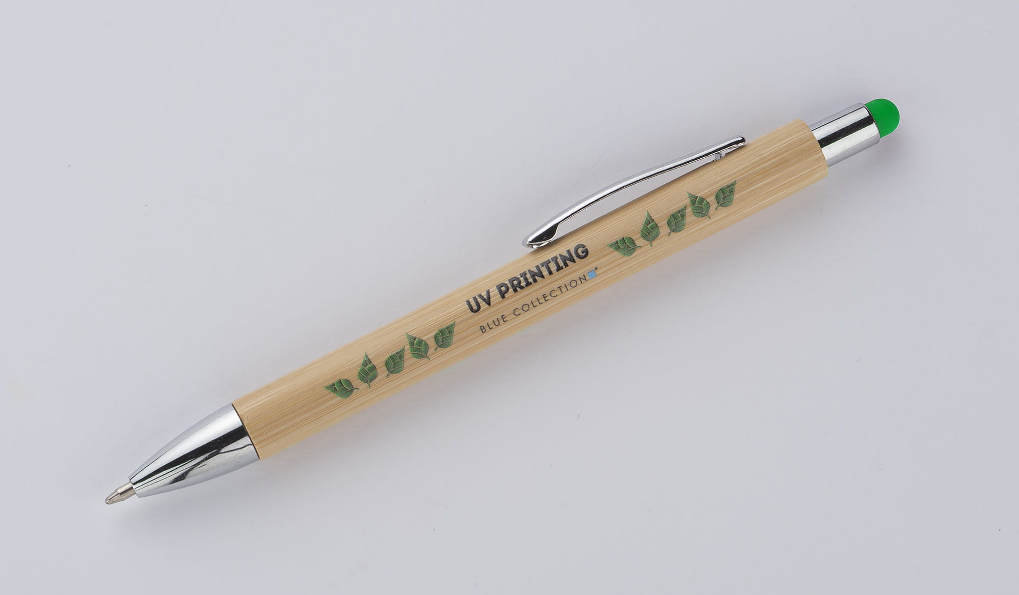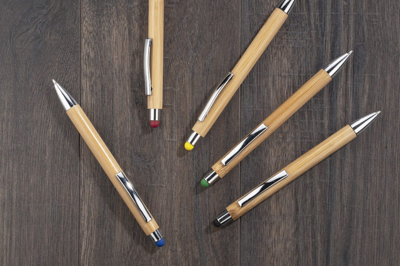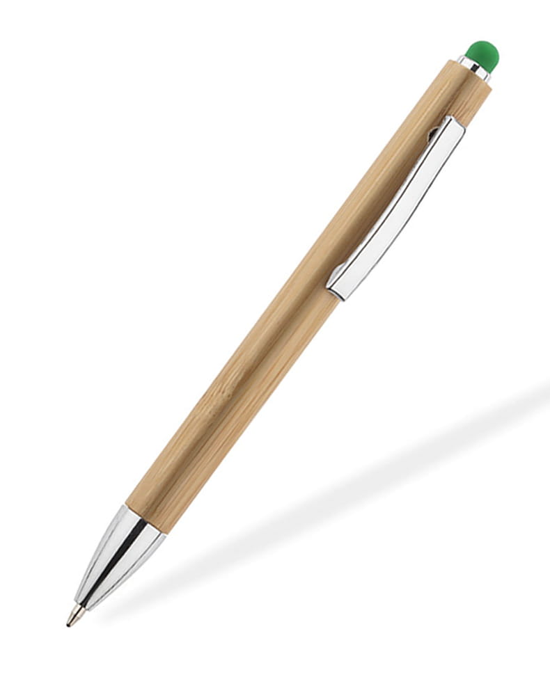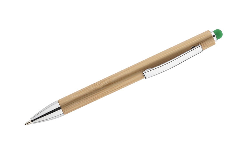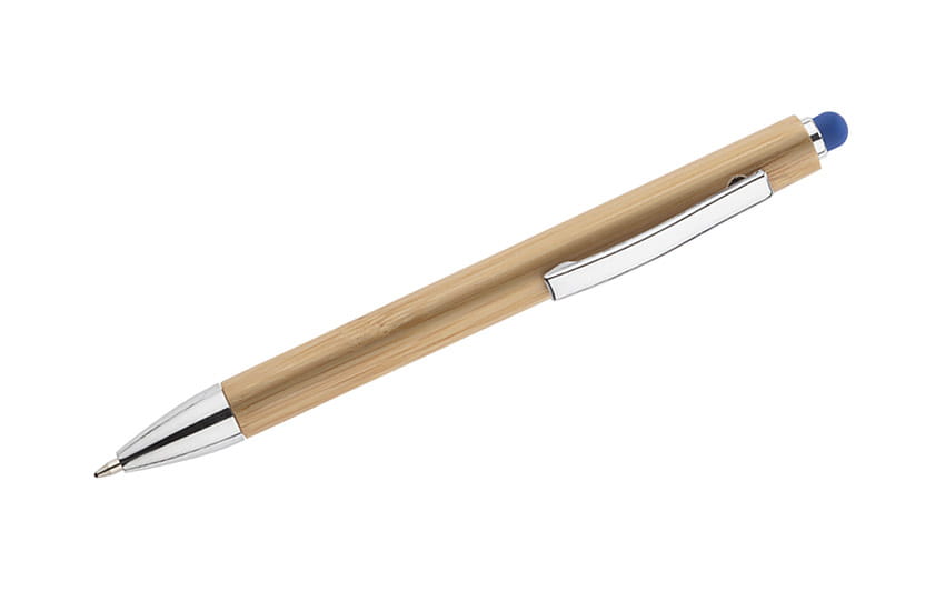 Touchpen bambusowy TUSO to długopis, którego korpus został w całości wykonany z bambusa. Chromowane wykończenia nadają mu elegancji. Kolorowa końcówka do obsługi ekranów dotykowych stanowi ciekawą ozdobę.