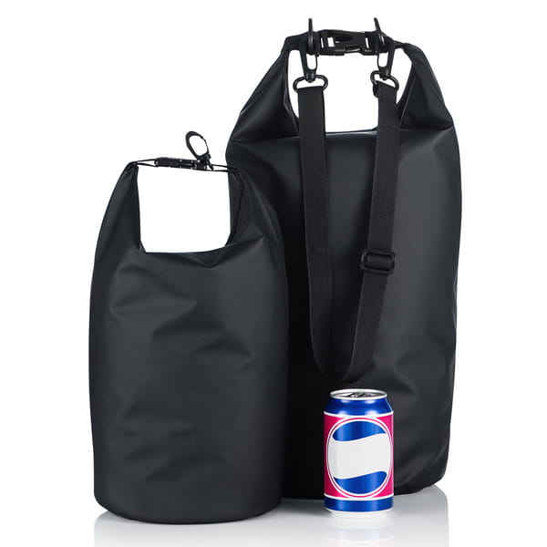 Wodoodporny worek o gumowanej powierzchni. Pojemność 10 litrów. Wyposażony w szczelne rolowane zamknięcie i odpinany pasek na ramię.