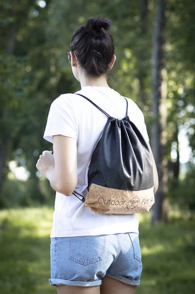 Worek/plecak non-woven z korkowym wykończeniem. Pojemność 7 litrów.