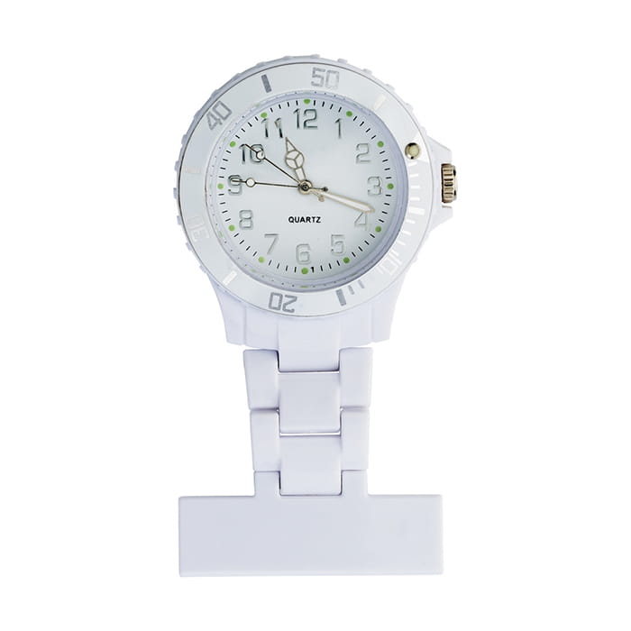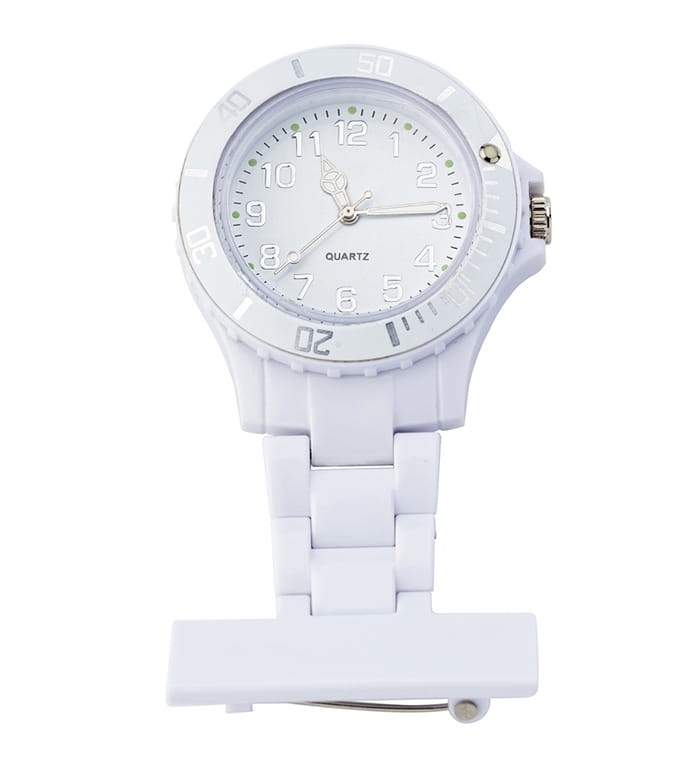 Zegarek pielęgniarki ze srebrnymi elementami i agrafką