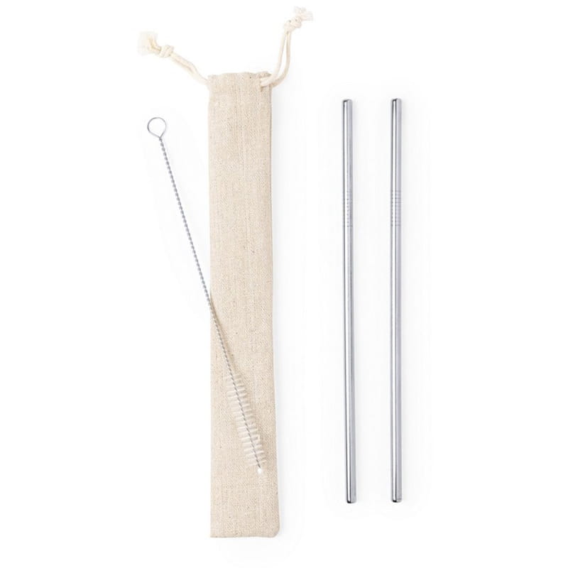 Zestaw 2 słomek wielokrotnego użytku ze stali nierdzewnej, czyścik i bawełniany woreczek w komplecie