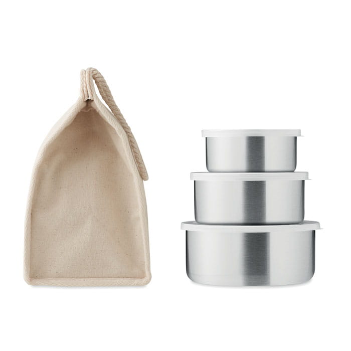 Pudełka ze stali nierdzewnej na lunch lub zestaw do przechowywania z izolowaną torbą bawełnianą z zamknięciem na rzepy. Zabierz swój lunch ze sobą do pracy lub gdziekolwiek jesteś dzięki tym trzem okrągłym lunchboxom. Torba może być używana do utrzymania świeżości artykułów spożywczych. Materiał izolacyjny: wewnętrzna srebrna folia aluminiowa i sznurek.