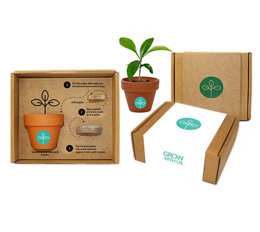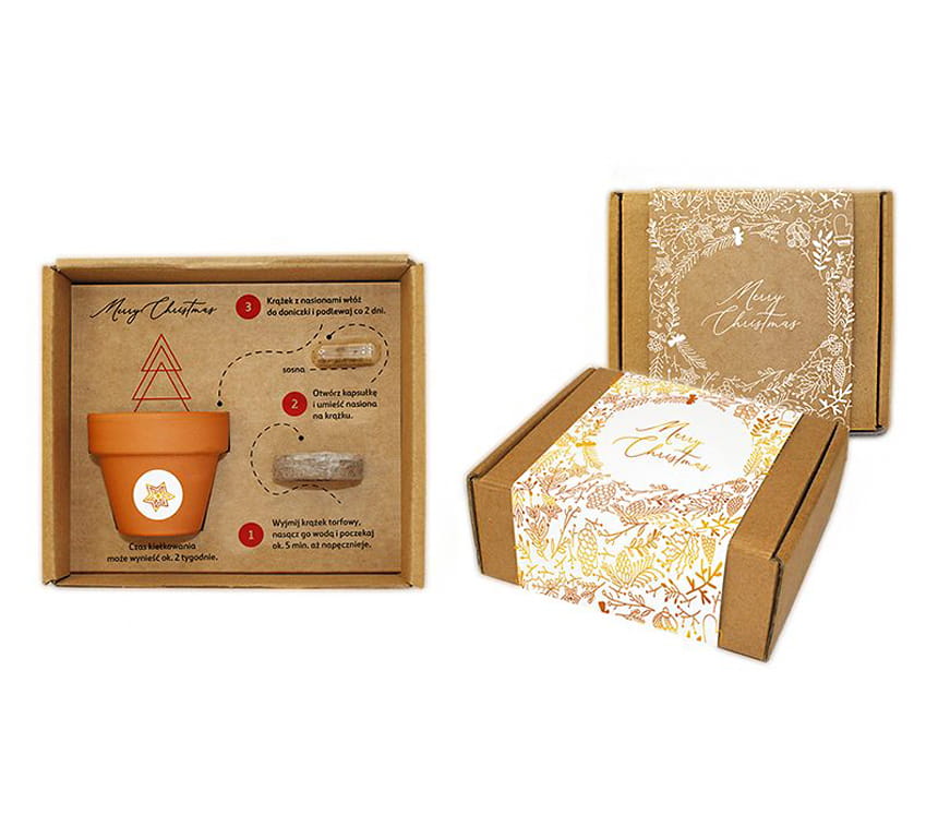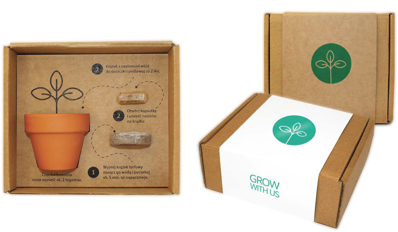 Zestaw do uprawy rośliny w papierowym kartonowym pudełku. Już samo rozpakowanie jest zabawą, a to dopiero początek!