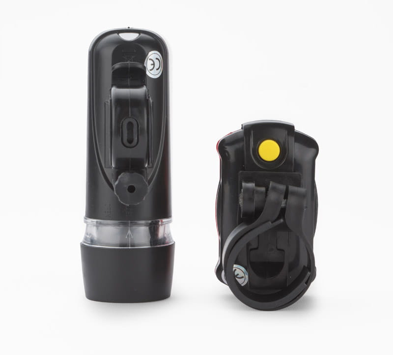 wymiary: ⌀36 x 102 mm (lampka przednia), 68 x 39 x 30 mm (lampka tylna)