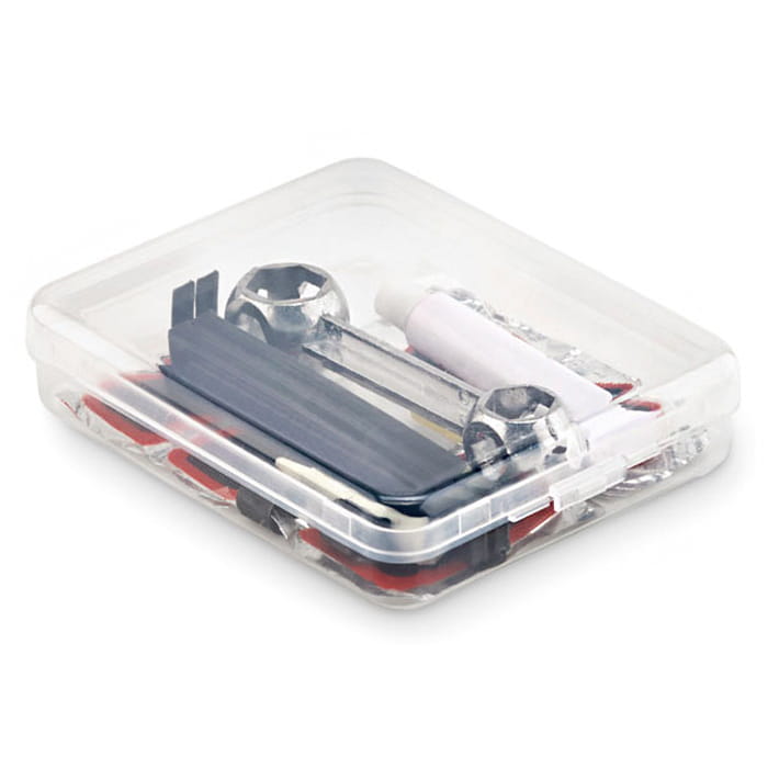 Zestaw naprawczy do roweru w przezroczystym pudełku