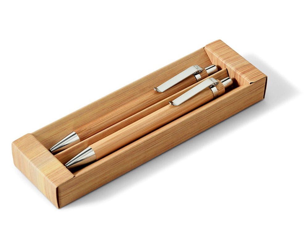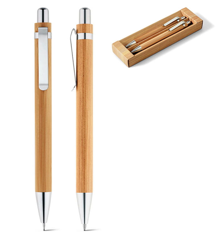Zestaw, pióro kulkowe i ołówek mechaniczny. Bambus. Mechaniczny ołówek: grafit 0.7 mm. Dostarczane w kartonowym etui. ø11 x 138 mm | Pudełku: 171 x 53 x 23 mm