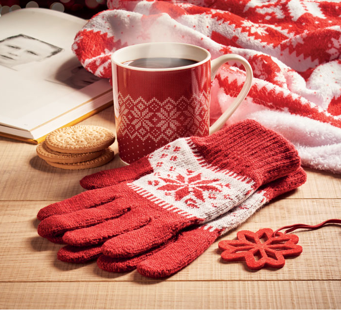 Zimowy zestaw upominkowy zawierający: rękawiczki z dzianiny z wykończeniem do ekranu dotykowego w zimowym wzorze oraz ceramiczny kubek. Pojemność: 300 ml. Całość w dopasowanym pudełku.